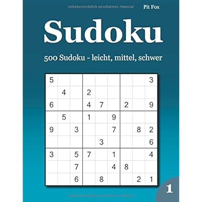 Sudoku - 500 Sudoku - leicht, mittel, schwer 500 Sudoku in drei Schwierigkeitsstufen: Nr. 1 bis 100 = leicht Nr. 101 bis 200 = mittel Nr. 201 bis 500 = schwer Das Puzzlefeld ist in neun kleine 3x3-Quadrate unterteilt. Ziffern von 1 bis 9 sind so zu ergänzen, dass sie in jeder Zeile, in jeder Spalte und jedem der 3x3-Quadrate nur einmal vorkommen.