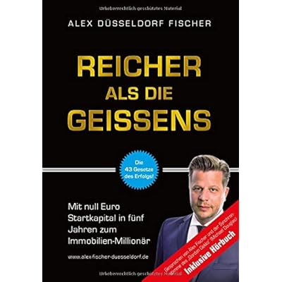 Pressestimmen Um Wohlstand und Reichtum aufzubauen, empfehle ich Alex Fischer. Seine Content-Dichte und sein Know-how sind einfach unglaublich. --- Dirk Kreuter (Europa's Verkaufstrainer Nr. 1 und Speaker of the Year 2011)Alex Fischer hat meine persönliche und geschäftliche Entwicklung extrem beschleunigt. Sein Buch zeigt eine gut strukturierte Landkarte mit Abkürzungen zu Deinen Zielen. Greif zu! --- Hendrik Klöters (Gründer von AMRAP Fitness und dem UnternehmerkanalAlex Fischer ist ein Querdenker. Das Wissen in seinem Buch geht weit über Immobilien-Investments hinaus. Es zeigt Dir, wie Du beruflich und privat erfolgreich und glücklich wirst. --- Kris Stelljes (Internet-Millionär und YouTuber) Über den Autor und weitere Mitwirkende Alex Düsseldorf Fischer startete als mittelständischer Sohn zweier Lehrer mit null Eigenkapital. Er zählt zu den bekanntesten Immobilien-Investoren im deutschsprachigen Raum und lebt, was er predigt. Er ist kein Coach, sondern aktiv als Immobilien-Investor tätig und hat es sich zum Ziel gesetzt, so vielen Menschen wie möglich mit seinem Insiderwissen zu helfen, finanziell unabhängig und frei zu werden.Da für den Weg zur finanziellen Freiheit ein massives unternehmerisches Fundament nötig ist und Alex von Mitarbeitern, Freunden und Geschäftspartnern häufig dieselben Fragen gestellt bekommen hat, traf er die Entscheidung, alles Wichtige in einem Buch zusammenzufassen.Mit dem Schreiben begann er, den Anspruch für das Buch immer weiter zu heben und schrieb es schlussendlich unter folgendem Gesichtspunkt: Wenn ich 450 Seiten hätte, um meinem Sohn alles Wichtige mitzugeben, was würde ich aufschreiben? Daraus entstand das Buch Reicher als die Geissens.