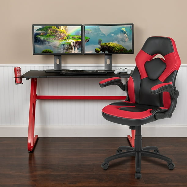 Desk Bundle - Red Gaming Desk, Cup Holder, Headphone Hook ... from i.ebayimg.com Shop for gaming desk & chair set with cup holder, headphone hook, and monitor stand. Cup holder cup holders on both sides of the seat to meet your different lifestyles and make your use easier. 51.5w x 23.75d x 30h smooth.75 thick black laminate top with 2 cable management grommets detachable cup holder (3.5w x 2.75h) and headset hook (3.5w x 3.75d) It takes the flexibility and support that a wheeled gaming chair provides, and gives it a much more living. Here, we've rounded up the best cheap gaming chair deals you can find online right now. Get it as soon as fri, apr 9. Complete your gaming experience with our red gaming ergonomic desk with cup holder and headphone hook or black gaming desk with cup holder, headphone hook, and monitor/smartphone stand. Add to compare compare now.